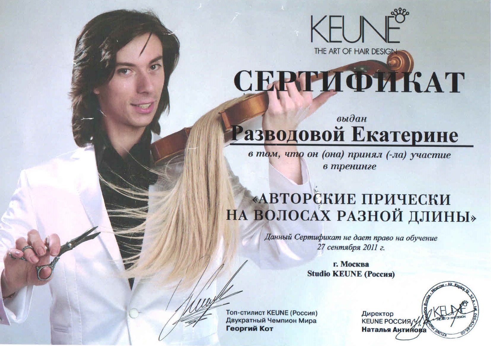 С детства я мечтала быть парикмахером. В 2004 г. закончила Ярославский техникум бытового сервиса и международную академию San Valero, и вот мечта сбылась, я парикмахер! В 2013 — технологом компании Keune (Россия).